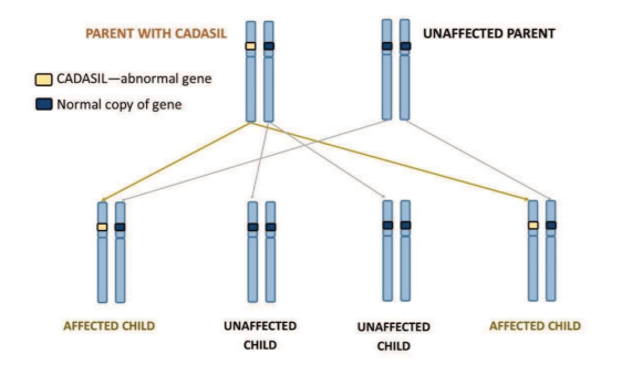 Figure 2. This is a diagram of how EASILY CADASIL can be inherited. As you can see, you need only one abnormal copy of the gene to be affected. (Cambridge Hospitals)