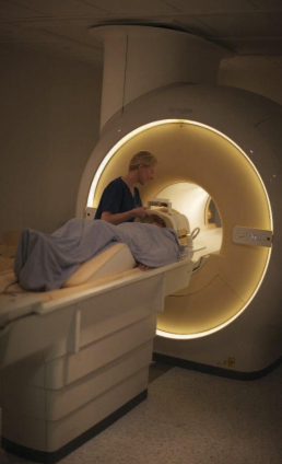 Figure 4. This is an MRI machine, it does not involve radiation but it can be distressing for claustrophobic people. (Cambridge Hospitals)